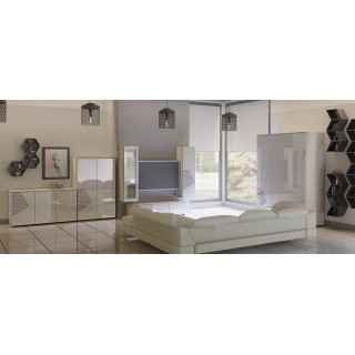 System mebli COMO charakteryzuje się prostą formą i nowoczesnym wzornictwem. Fronty wykonane są w wysokim połysku z czarnymi frezowanymi wstawkami. Wyposażone w system otwierania bezuchwytowego TIPON.