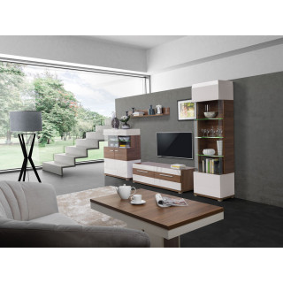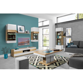 Model mebli MOKA składa się z 13 segmentów systemu. Idealnie będą pasować bo Twojego przedpokoju, jadalni a także do pokoju dziennego. Korpusy oraz fronty wykonane z połączenia wysokiej jakości płyty laminowanej i płyty MDF w dwóch wariantach kolorystycznych: beż połysk - wiśnia oraz biały połysk - dąb