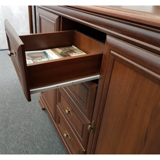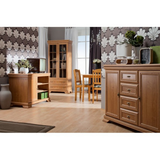 Witryna Kora - KRW2 posiada obszerne półki za przeszklonymi drzwiczkami oraz dwie duże szuflady. Zapewni nam dużo miejsca do przechowywania i ekspozycji.