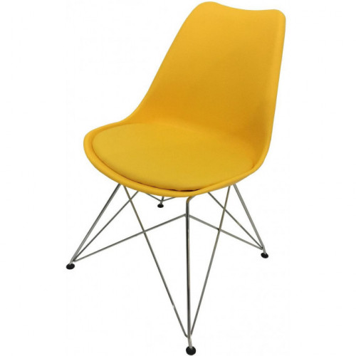 Krzesło Eden charakteryzuje się nowoczesnym stylem. Siedzisko wykonane jest z miękkiego tworzywa powleczonego skórą ekologiczną, oparcie z wysokiej jakości tworzywa sztucznego (polipropylenu), a stelaż i nogi są metalowe. Dostępne w wielu kolorach. Krzesło jest bardzo wygodne, stabilne i atrakcyjne wizualnie. Doskonale sprawdzi się w każdym pomieszczeniu.