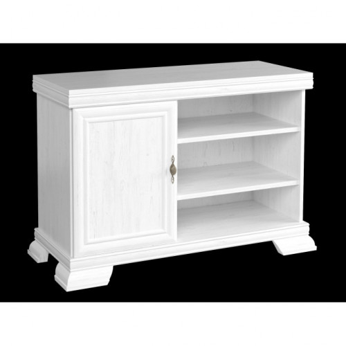Stolik RTV Kora - KRT posiada zamykaną szafkę i otwarte półki.