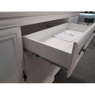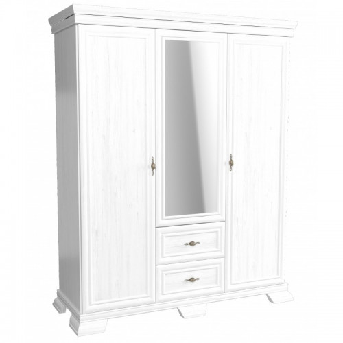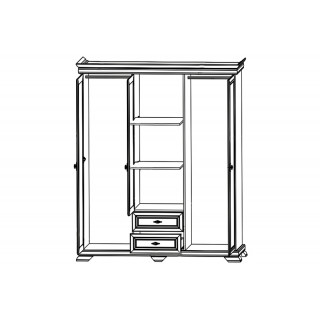 Szafka Kora - KS2 to piękny, solidny i funkcjonalny mebel. W środkowej części posiada dwie szuflady i zamykaną szafką z lustrzanymi drzwiczkami. W bocznych częściach znajdują się drążki na wieszaki.
